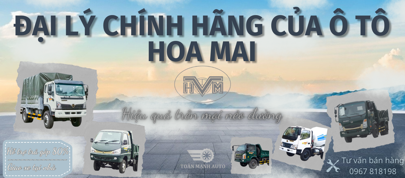 Công ty trách nhiệm hữu hạn một thành viên Toàn Mạnh (Toàn Mạnh Auto) chính thức trở thành đại lý ủy quyền kinh doanh của Hoa Mai, Chiến Thắng, FAW, WAW, Kenbo theo mô hình chuẩn 3S, trên tổng diện tích 5,000m2. Showroom trưng bày và kinh doanh đầy đủ các dòng xe & phụ tùng chính hãng. Song song với việc bán xe, chúng tôi còn cung cấp các dịch vụ sửa chữa, bảo trì, gia cố thùng xe, bảo hành và đăng kiểm ô tô, với cam kết cũng như ưu tiên hàng đầu là “Uy tín – Chất lượng – Hiệu quả – Nhanh chóng”.