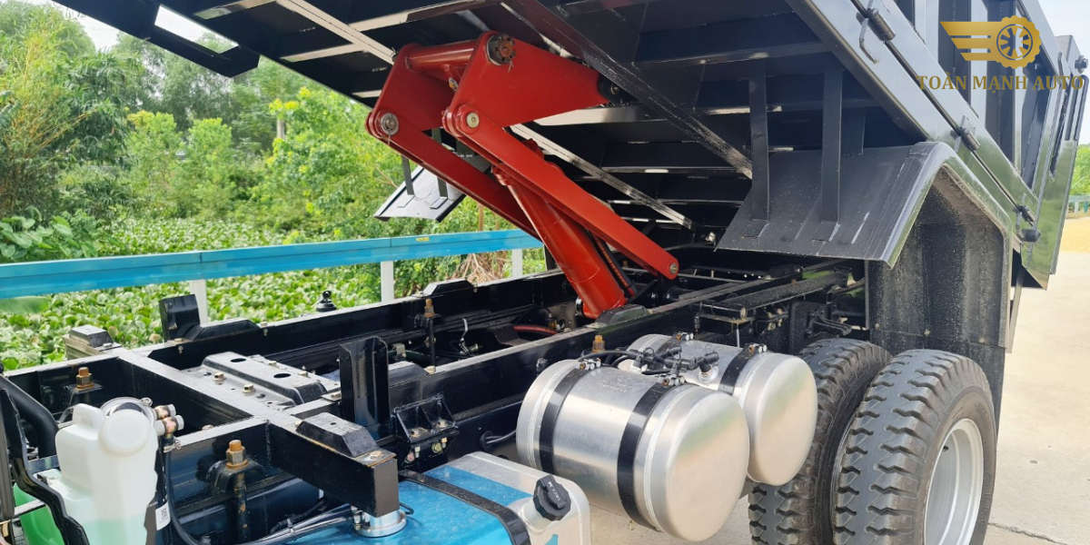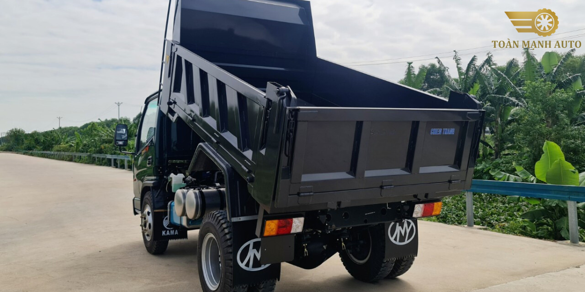 Thùng xe có thể tích bằng mặt thùng rơi vào 2.9 khối với kích thước là 2800 x 1740 x 595 (mm) thùng xe rất chắc chắn và phù hợp để chuyên chở vật liệu cho các công trình dân sinh.